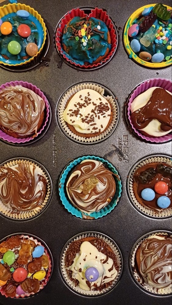 Auch die bunten Muffins, mit denen mich meine Töchter eines Abends überrascht haben.